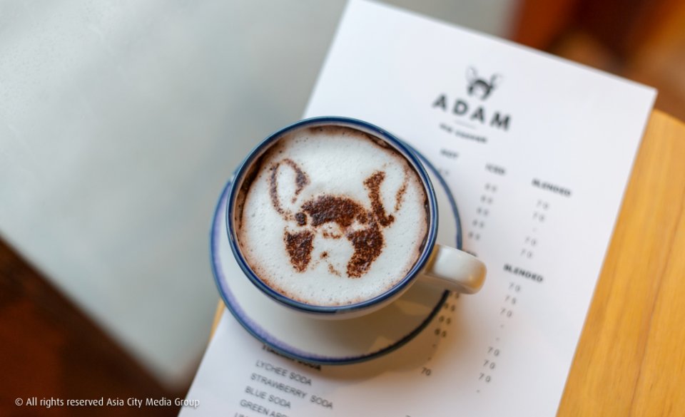 และคำถามที่เราสงสัยตั้งแต่ก่อนมาร้านว่าชื่ออันน่ารักของที่นี่มีที่มาจากอะไรก็ได้รับคำตอบเมื่อเราได้พบกับเจ้าเฟรนช์บูลด็อกตัวอ้วนอยู่ในร้าน ผู้ทำหน้าที่เป็นมาสคอตหลัก (ดูได้จากชื่อร้านและโลโก้) เพียงแต่ตอนนี้เจ้า Adam หรือทองดำ ผู้เป็นที่มาของชื่อร้านวันนี้ไม่อยู่แล้ว เหลือแต่เจ้าทองพุ ผู้มารับหน้าที่ต้อนรับลูกค้าแทน ซึ่งหากใครเป็นแฟนคลับหมาเฟรนช์บูลด็อกแล้วล่ะก็ สามารถไปเล่นกับน้องได้ที่ร้านนี้เลย