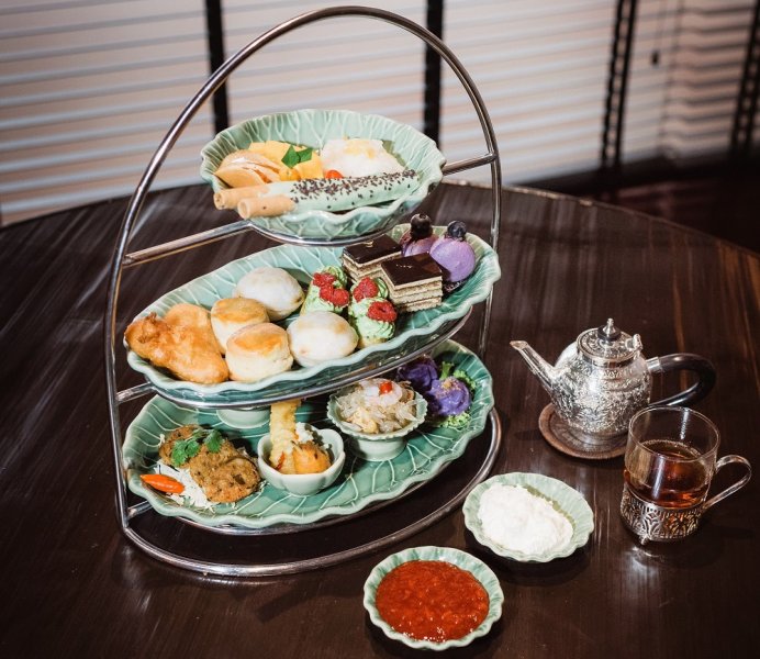 Erawan Tea Room คือห้องอาหารไทยในเครือโรงแรม Grand Hyatt Erawan Bangkok โดยชุด Afternoon Tea ของที่นี่มีชาให้เลือกหลากหลาย อาทิ ชาสมุนไพร ชาผลไม้ หรือชาเขียว มาพร้อมกับของคาวหวานที่เน้นความเป็นไทย เช่น ทองม้วน ลูกชุบ ช่อม่วง ข้าวเหนียวมะม่วง สะเต๊ะ ไปจนถึงส้มตำ แต่ก็ยังมีของหวานอย่างมาการอง ทีรามิสุ หรือสโคนให้ทานคู่กันอยู่ด้วยนะ โดยเมนูจะเปลี่ยนไปเรื่อยๆ ทุก 2 เดือน ทั้งหมดนี้ราคาเพียง 600 บาท เสิร์ฟเวลา 14:30-18:00 น.