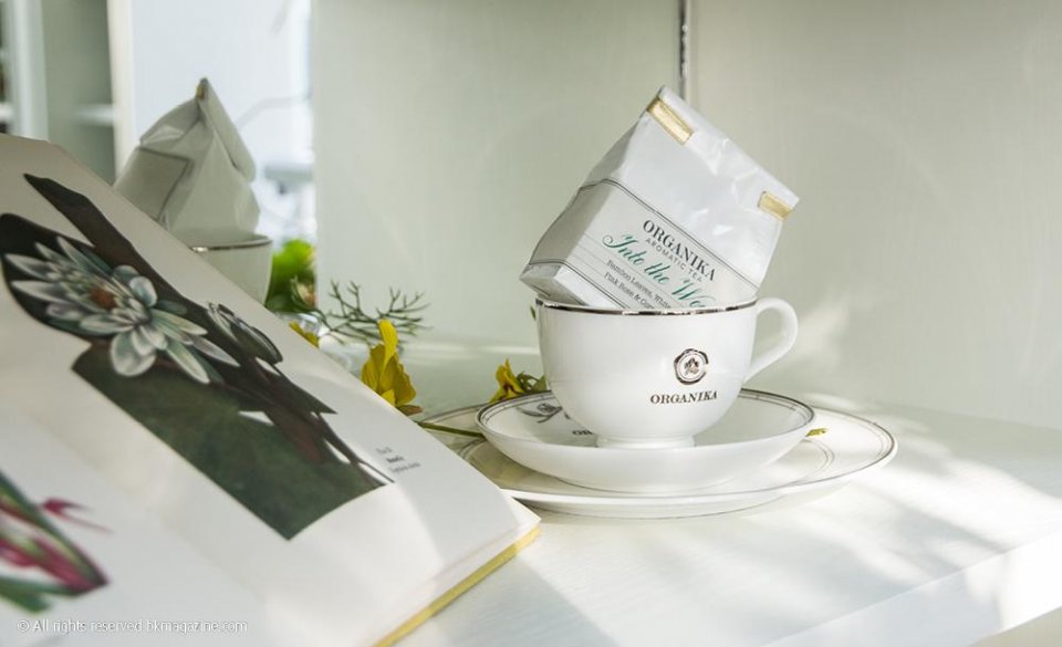 เรารู้จัก Organika จากผลิตภัณฑ์สปาและเครื่องหอม ไม่ว่าจะเป็นสบู่ เทียนหอม โลชั่น ครีมอาบน้ำ จนไปถึงน้ำมันนวด (นี่ยังไม่รวม Secret Spa ที่มีบริการนวดแบบครบวงจร!) แต่เขายังมีชาเบลนด์เองถึง 5 กลิ่น ได้แก่ Memoirs of Sunrise, Into the Woods, Ocean of Dreams, Secret Rose Garden และ Kisses of Jasmine ซึ่งทั้งหมดนี้เป็นกลิ่นเดียวกับสปาโปรดัคอื่นๆ นั่นแหละ ชุด High Tea (1,250 บาท) เสิร์ฟตลอดทั้งวัน ประกอบด้วยชา 1 กา สโคน และขนมหวานให้กินเล่น แอบบอกว่าในร้านบรรยากาศดีมาก ทั้งเฟอร์นิเจอร์สีขาวสะอาดตาตัดกับไม้เลื้อยสีเขียวรอบๆ ให้บรรยากาศสดชื่นสุดๆ ไปเลยล่ะ