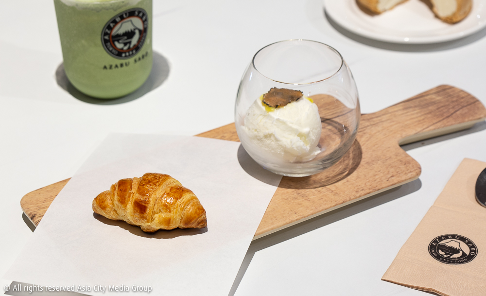 จริง ๆ แล้วเจลาโต้ของร้าน Azabu Sabo ที่ถึงกับต้องอิมพอร์ตสูตรและวัตถุดิบหลักอย่างนมฮอกไกโดมาจากญี่ปุ่นโดยเฉพาะ ก็นับได้ว่าเป็นหนึ่งในแบรนด์เจลาโต้ที่มีความพรีเมียมขั้นสุดในกรุงเทพฯ อยู่แล้ว พอเขาขยายสาขามาอยู่ใจกลางเมืองในศูนย์การค้าสยามพารากอนเมื่อเร็ว ๆ นี้ ความพรีเมียมเลยทะลุขีดสุดขึ้นไปติดเพดานห้างกันเลยทีเดียว กับการเปิดตัววัตถุดิบหลักอย่าง 'เห็ดทรัฟเฟิลดำ' (Black Truffle) ที่ถูกจับมาใส่ไว้ในไอศกรีมเจลาโต้ของแบรนด์นี้เป็นครั้งแรก