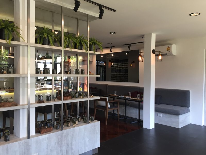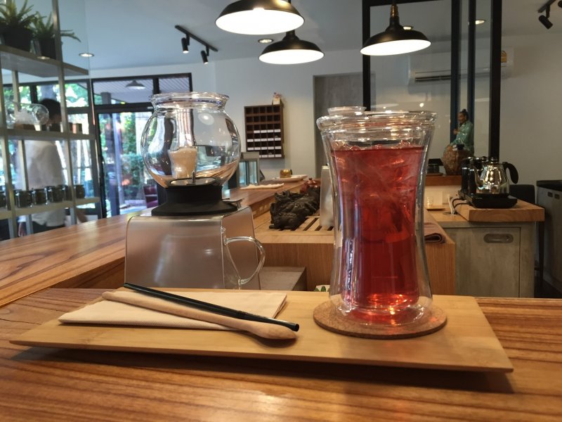ร้านชาซึ่งขนาบข้างด้วยสนามหญ้าแห่งนี้ซ่อนตัวอยู่ในซอยสุขุมวิท 59 ถ้าชอบดื่มชาร้อน เราแนะนำให้ลอง จือหลี่งเฮียง (360 บาท) ชาเขียวซึ่งผ่านกระบวนการหมักนานกว่า 2 ปีจนให้รสชาติเปรี้ยวหวานคล้ายลิ้นจี่ เราชอบที่ชาร้อนจะถูกเสิร์ฟในชาแก้วใส ทำให้เรามองเห็นใบชาข้างในได้ พร้อมด้วยนาฬิกาทรายจับเวลา เราจะได้รู้ว่าชาพร้อมดื่มแล้วหรือยัง