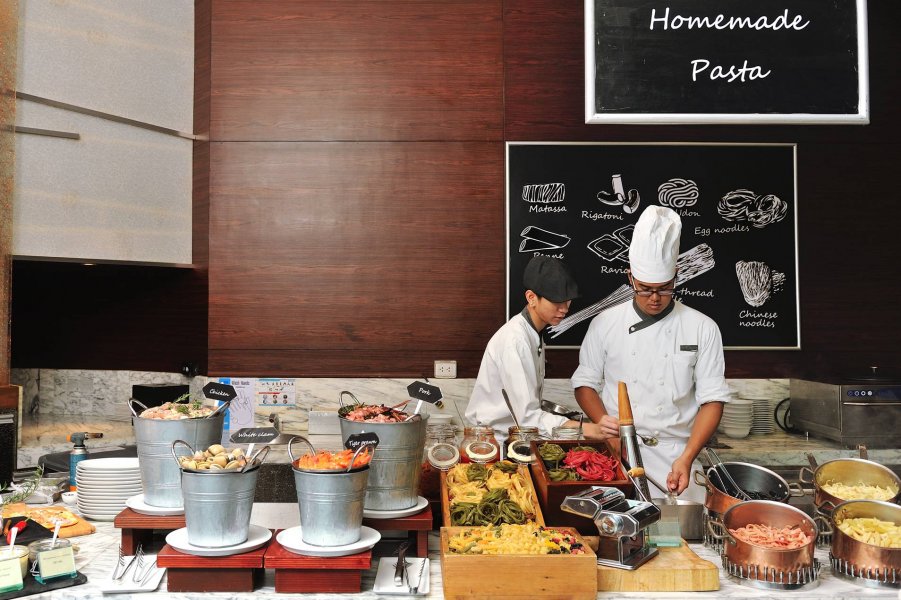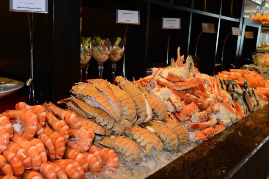 จุดเด่นของบุฟเฟต์ที่นี่คือการปรุงอาหารใหม่แบบสดๆ ร้อนๆ ไม่ว่าจะเป็นตับห่านฟัวกราส์ทอด พิซซ่าอิตาเลียนแท้ส่งตรงออกจากเตา เมนูพาสต้า และซีฟู้ดสุดเด็ด เช่น ปูอลาสก้า กุ้งมังกรร็อคล็อบสเตอร์ เมนูเนื้อย่างและเนื้อแล่ อีกทั้งยังมีอาหารไทยที่หลากหลายด้วยนะ นอกจากนี้แต่ละโต๊ะยังสามารถสั่งบอสตันล็อบสเตอร์ได้ 1 ที่ แต่ที่เด็ดสุดคือแพ็คเกจไวน์ 20 ประเภท สั่งได้ไม่อั้นในราคา 495 บาทนะ
