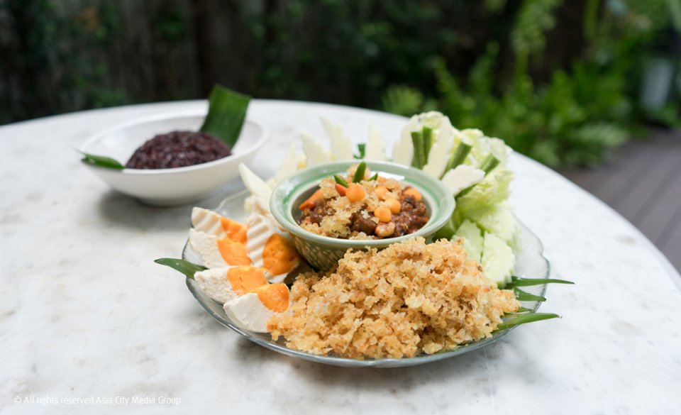 ห้ามพลาดเมนูหาทานยากอย่างขนมจีนซาวน้ำ (290 บาท) ที่เลือกใช้สับปะรดหอมสุวรรณ เคียงข้างมาด้วยเครื่องเคียงจัดเต็มตามแบบขนมจีนซาวน้ำโบราณแท้ๆ กับอีกเมนูคือ น้ำพริกลงเรือ (190 บาท) ถึงจะเป็นเมนูที่ดูคุ้นหูคุ้นตากันดี แต่มีความพิเศษลงลึกถึงรายละเอียดเล็กๆ น้อยๆ เพราะขนาดไข่เค็มที่ใช้ยังต้องเป็นไข่เค็มที่หมักจากดินเกษตรอินทรี รวมถึงผักปลอดสารพิษให้ประโยชน์ล้นจาน