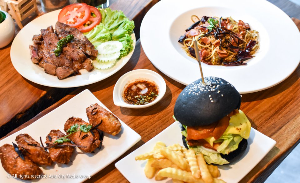 นอกจากเมนูกาแฟที่เราชอบอย่าง Le Howl Taro Coffee (110 บาท) ที่เป็นกาแฟลาเต้นมเผือกหอมมัน ยังมีเมนูอาหารที่เหมาะสำหรับแวะมานั่งกินเพลินๆ กับแก๊งเพื่อนด้วย อาทิ Cheese Burger Charcoal (140 บาท) ที่เราชอบตรงความชุ่มซอสของไก่สไปซี่ด้านใน แถมยังมีจานเด็ดสองจานที่ควรลอง คือปีกไก่ Le Howl (120 บาท) และสันคอหมูคุโรบูตะย่างจิ้มแจ่ว (180 บาท)