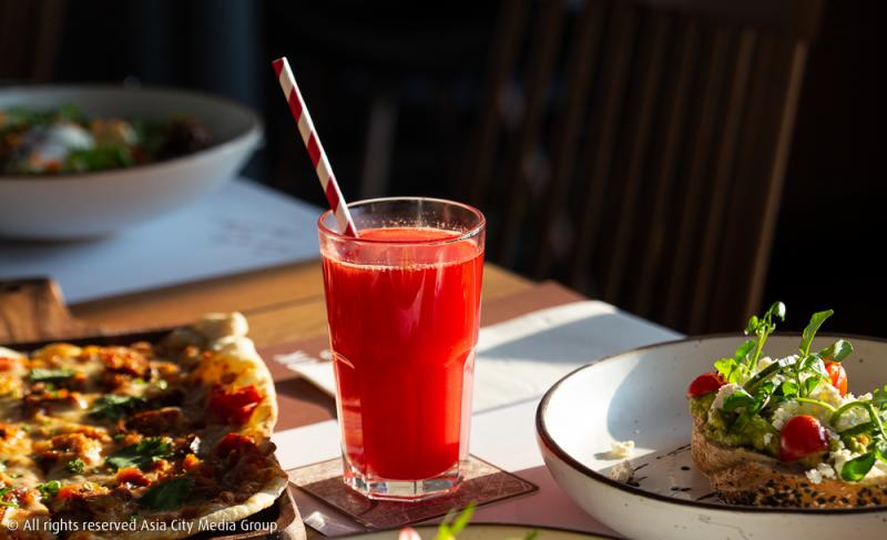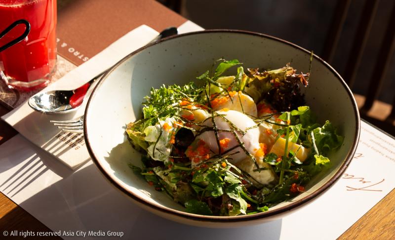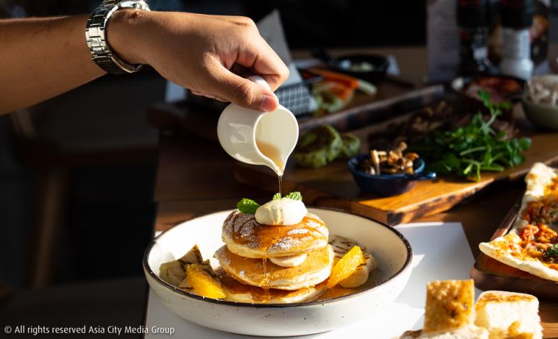 ส่วนใครที่ชอบบรันช์สไตล์อังกฤษ ที่นี่ก็มีเมนูเอาใจคนรักโทสต์อย่าง Smahed Avocado & Ricotta on Sourdough (280 บาท) นอกจากความลงตัวของขนมปังซาวโดว์ที่เข้ากันดีกับอะโวคาโด้แล้ว จานนี้ยังท็อปปิ้งมาด้วยแตงกวาญี่ปุ่นและมะเขือเทศที่ช่วยเพิ่มรสชาติให้จานนี้โดดเด่นกว่าอาหารมังสาวิรัติทั่วไป