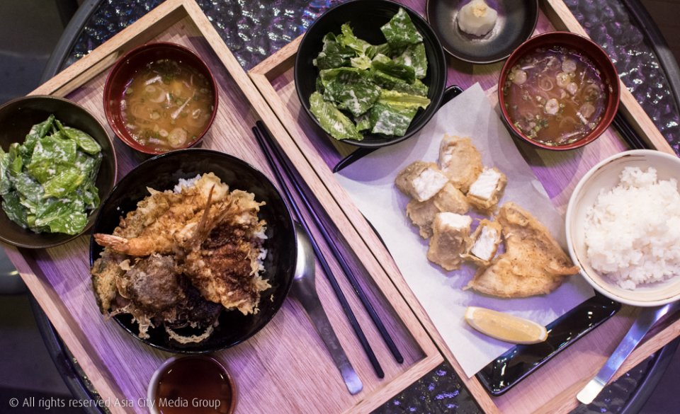 ซึ่งพอจับเอาคาแรกเตอร์การใช้วัตถุดิบโฮมเมดฉบับโลคัลของเชฟโจมารวมกันกับเมนูเทมปุระของเชฟโม เราเลยจะได้เห็นเซ็ตเมนูน้องใหม่อย่าง BATT Tendon Set (350 บาท) ประกอบไปด้วยข้าวด้งเทมปุระหน้ากุ้ง ปลาทราย ฟักทอง กระเจี๊ยบ มะเขือม่วง ราดด้วยเทนจูซอสรสติดหวานนิดหน่อยแบบกำลังดี พร้อมสลัดผักออร์แกนิกส์จากเกษตรกรไทย ซุปมิโสะที่ใช้มิโสะทำเองของเชฟโจ และไข่ตุ๋นเครื่องแน่นแบบตักไปเจอแต่เครื่องไม่เจอไข่ ใครที่ยังบ่นว่าไม่อิ่มอีก เราจะตี !