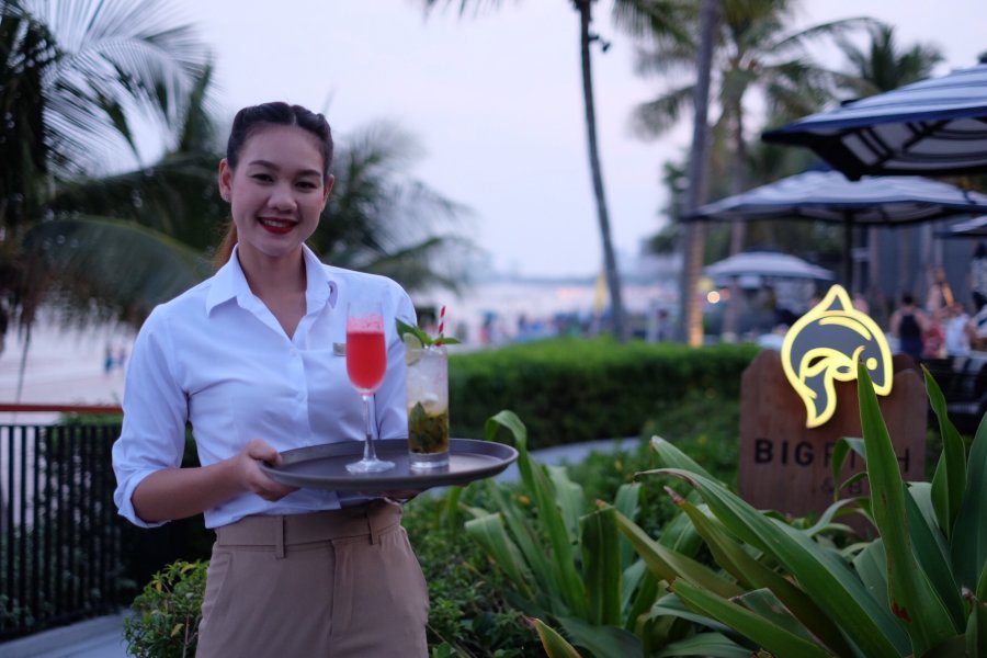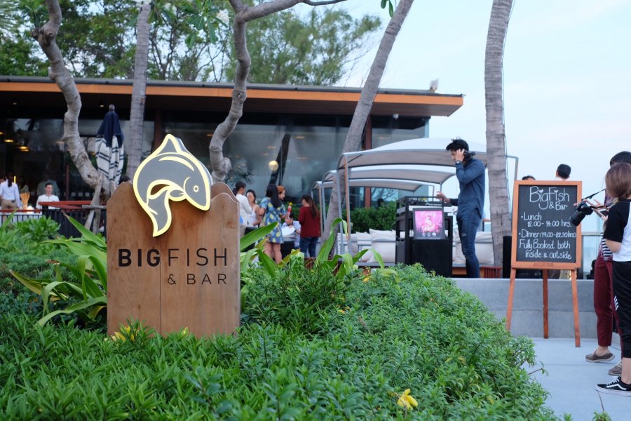 สำหรับคนรักอาหารฟิวชั่นที่มาพร้อมวิวทะเลดี ๆ สงบ ๆ ลองแวะมาที่ Big Fish And Bar ห้องอาหารสุดโรแมนติกริมชายหาดหัวหิน ซึ่งเป็นร้านอาหารที่ตั้งอยู่ในโรงแรม หัวหิน แมริออท รีสอร์ท แอนด์ สปา นั่นเอง ส่วนใหญ่แล้วห้องอาหารริมทะเลมักจะเป็นแบบเอาท์ดอร์เปิดโล่ง แต่สำหรับที่นี่จะมีทั้งส่วนที่เป็นโอเพ่นแอร์ และส่วนอาคารอินดอร์ที่ล้อมรอบไปด้วยกระจกบานใหญ่ให้เรามองเห็นวิวทะเลได้เต็มสองตาในห้องแอร์เย็นฉ่ำ คุณเกิสท์ซ บาวเออร์ ผู้จัดการทั่วไปของทางโรงแรมแอบกระซิบกับเราว่า ใช่ว่าลูกค้าห้องอาหารของเราทุกคนจะชอบนั่งตากลมทะเลเสียเมื่อไหร่ บางคนก็แพ้แมลง บางวันก็อากาศร้อนอบอ้าวจนเกินไป หรือฝนตกหนัก ๆ ก็มี ก็เลยทำทั้งแบบอินดอร์และเอาท์ดอร์ให้เลือกนั่งกันตามใจชอบได้เลย