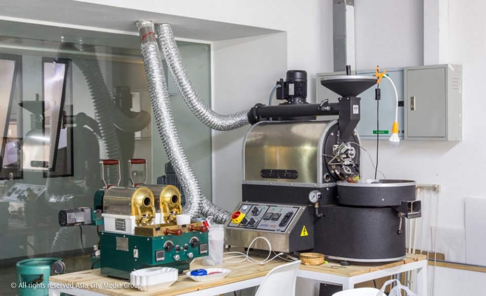 นอกจากจะเป็นห้องทดลองแล้ว ที่นี่ยังเป็นโรงคั่วเล็กๆ ที่ตุนเมล็ดกาแฟดีๆ ไว้เพียบ ทั้งจากสวนสดชื่น จ.ระนอง และแม่กำปองที่เชียงใหม่ และยังมีเมล็ดจากต่างประเทศทั่วโลกที่คุณโซ่คัดมาสำหรับคอกาแฟโดยเฉพาะ