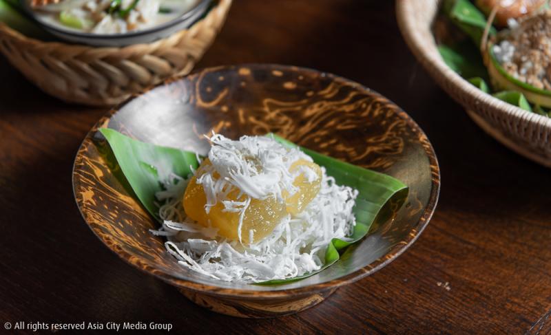 ปิดท้ายการเดินทางสุดแสนพิเศษนี้ด้วย เรื่องกล้วย ๆ (250 บาท) เซ็ตขนมหวานที่ประกอบมาจาก 'กล้วย' ล้วน ๆ ถึง 3 ชนิด คือ กล้วยไข่เชื่อม กล้วยปิ้งหอมกลิ่นน้ำตาลไหม้นิด ๆ จากซอสคาราเมลที่เสิร์ฟมาคู่กัน และหนุมานคลุกฝุ่นที่ใช้กล้วยน้ำว้ามาต้ม แล้วคลุกเคล้าด้วยมะพร้าว น้ำตาลทรายขาว และน้ำตาลทรายแดง กับอีกเมนูที่เราชอบมากคือ ข้าวเหนียวมูนหน้าจาวตาลเชื่อม (100 บาท) ซึ่งใช้จาวตาลสด ๆ หอม ๆ มาเชื่อมในรสชาติแบบหวานน้อย เสิร์ฟพร้อมข้าวเหนียวมูนทำเอง