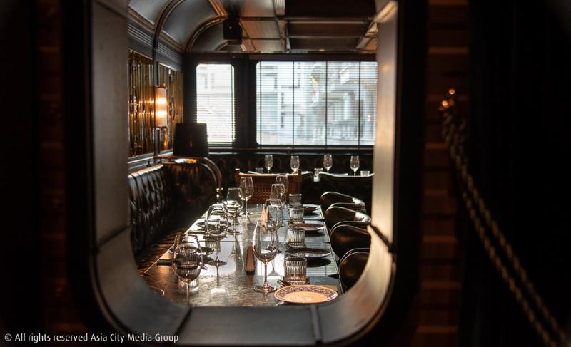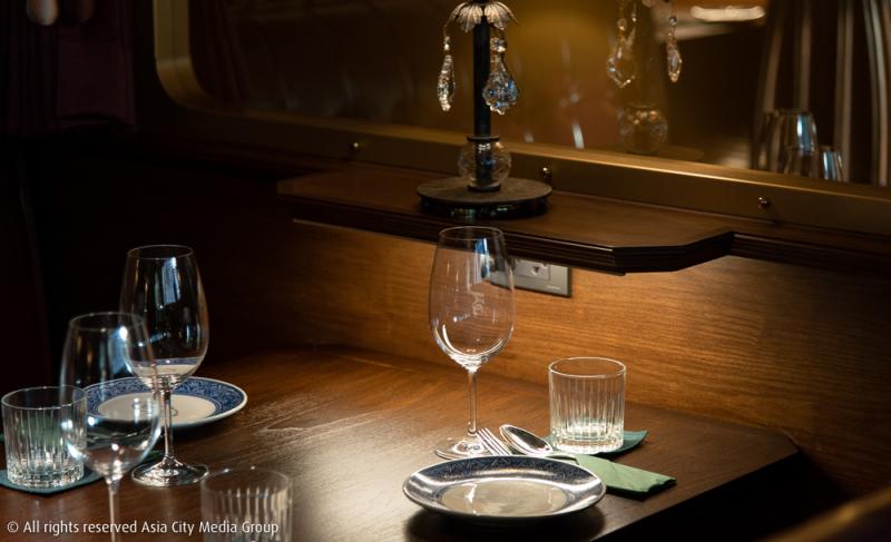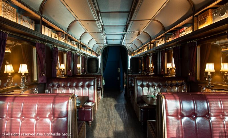 และเช่นเดียวกับการเดินทางด้วยขบวนรถไฟในชีวิตจริง ที่นั่งในชั้นสองและชั้นสามของร้านนี้จึงถูกแบ่งออกด้วยกิมมิกการตกแต่งให้เป็น ชั้น Business Class และชั้น First Clas ที่นั่งภายถูกทำเป็นเก้าอี้พนักพิงสูงบุด้วยเบาะหนังมันขลับ มีการจำลองหน้าต่างรถไฟไว้ตามแต่ละโต๊ะให้บรรยากาศการเดินทางด้วยรถไฟดูสมจริงขึ้นไปอีก ซึ่งที่เราชอบที่สุดคือการคุมแสงไฟให้ริบหรี่อย่างมีนัยยะซ่อนเร้น เพื่อให้การเดินทางนี้ดูลึกลับและเป็นส่วนตัวเหมาะกับเราเป็นที่สุด