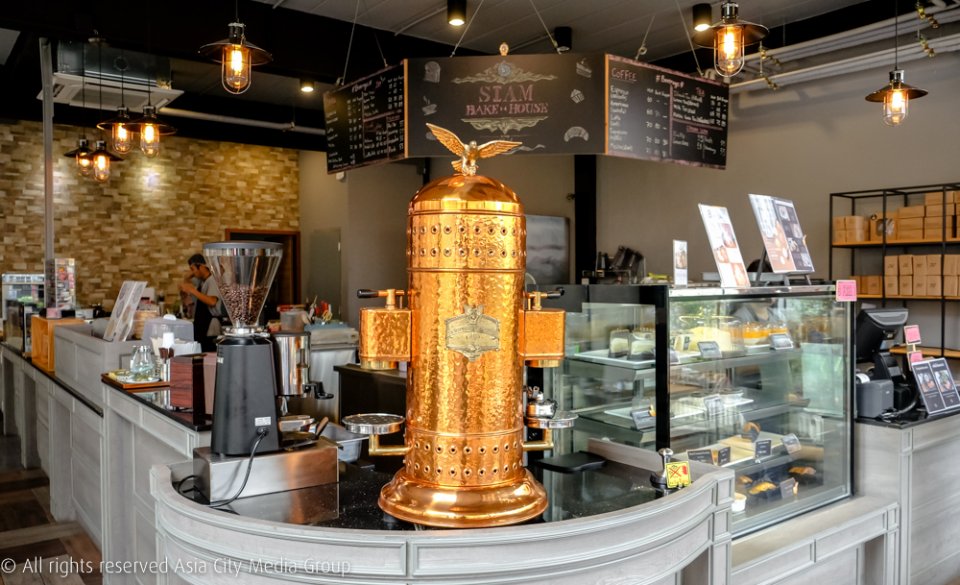 นอกจากขนมปังสังขยา (กล่องละ 160 บาท มี 10 ชิ้น) และบรรดาขนมอบต่างๆ แล้ว ยังมีเอสเพรสโซบาร์ที่มีจุดเด่นเป็นเครื่องชงกาแฟสีทองแวววาว รูปทรงแปลกตาส่งตรงมาจากประเทศอิตาลี เสิร์ฟทั้งกาแฟร้อน เย็น และปั่น (เริ่มต้น 60 บาท) แต่จะเลือกดื่มชาเบาท้อง (เริ่มต้น 65 บาท) หรือช็อคโกแลตร้อนๆ (70 บาท) แทนก็ได้