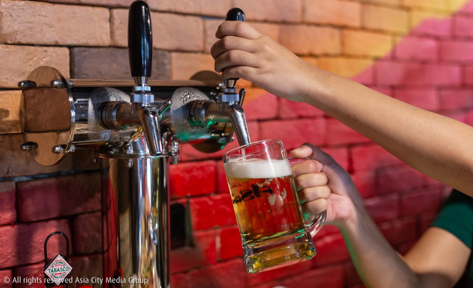แต่ไฮไลต์เด็ดที่ทำให้เราอยากแวะเวียนกลับมาร้านนี้พร้อมแก๊งเพื่อน คือการมีแท็ปเบียร์สด (สิงห์และอาซาฮี) ติดตั้งอยู่บนโต๊ะทุกตัว ซึ่งหมายความว่าเราสามารถกดเบียร์ออกมาจากแท็ปได้ทุกเมื่อที่ต้องการ โดยจะมีหน้าจอดิจิตอลบอกว่าเรากดไปกี่ ml. แล้ว ซึ่งสนนราคาตกอยู่ที่ลิตรละ 26-30 บาท เท่านั้น สั่งมากินคู่กับ Chips and Salsa (149 บาท) คือกินเพลินลืมนับแคลอรี่ไปเลย