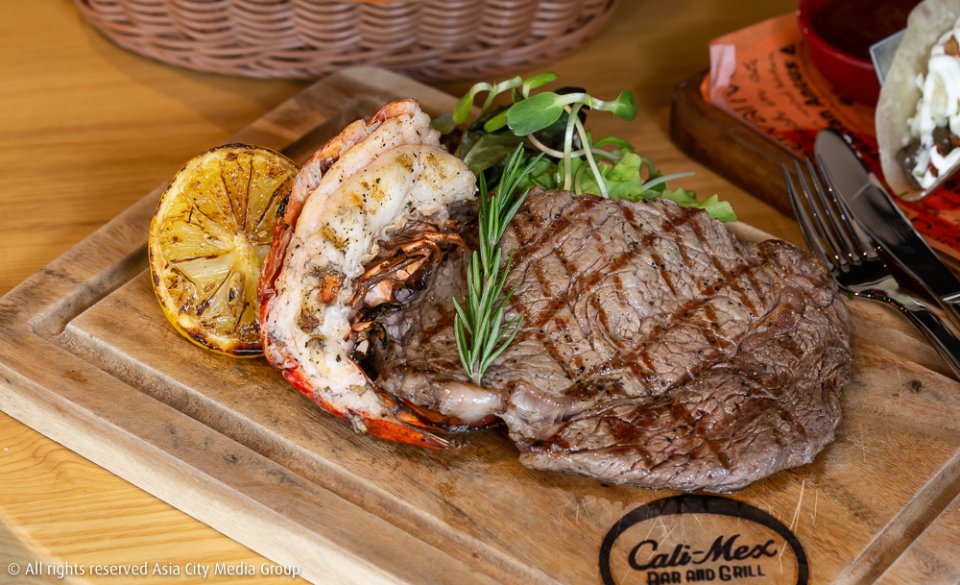 ส่วนใครที่เป็นสายเนื้อ เราอยากให้ลองสั่ง Surf And Turf (1,299/1,699 บาท) เนื้อริบอายจากออสเตรเลียกริลล์แบบกำลังดี เสิร์ฟพร้อมหางล็อบสเตอร์จากแคนาดาที่กริลล์มาจนหอม ใครที่หิวก็สั่งไซซ์ใหญ่มาได้เลย เพราะหลาย ๆ เมนูในร้านนี้จะมีขายแบบไซซ์เล็กและไซซ์ใหญ่