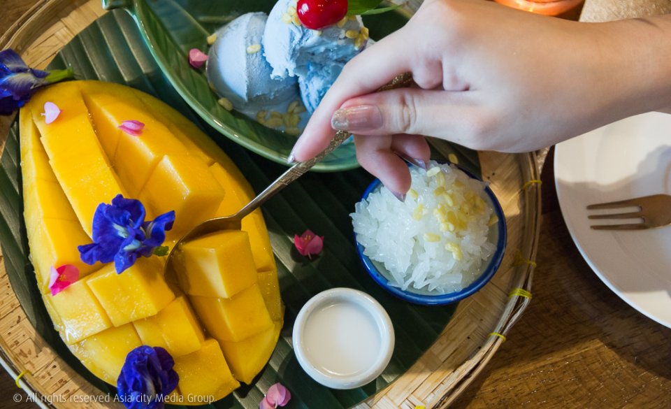 เจอแดดข้างนอกร้อน ๆ เมนูไอศกรีมน่าจะตอบโจทย์อย่าง ไอศกรีมกะทิ-ข้าวเหนียวมะม่วง (180 บาท) ที่เสิร์ฟมาในกระจาดสานดูคลาสสิกมาก ๆ มะม่วงหอมหวาน หรือถ้าอยากสดชื่นก็ต้องลอง น้ำปรุง (150 บาท) เป็นเครื่องดื่มโซดาผลไม้และมีผลไม้มาในแก้วทั้งมะม่วง บลูเบอร์รี่ และทับทิม รีเฟรชได้ดีสุด ๆ