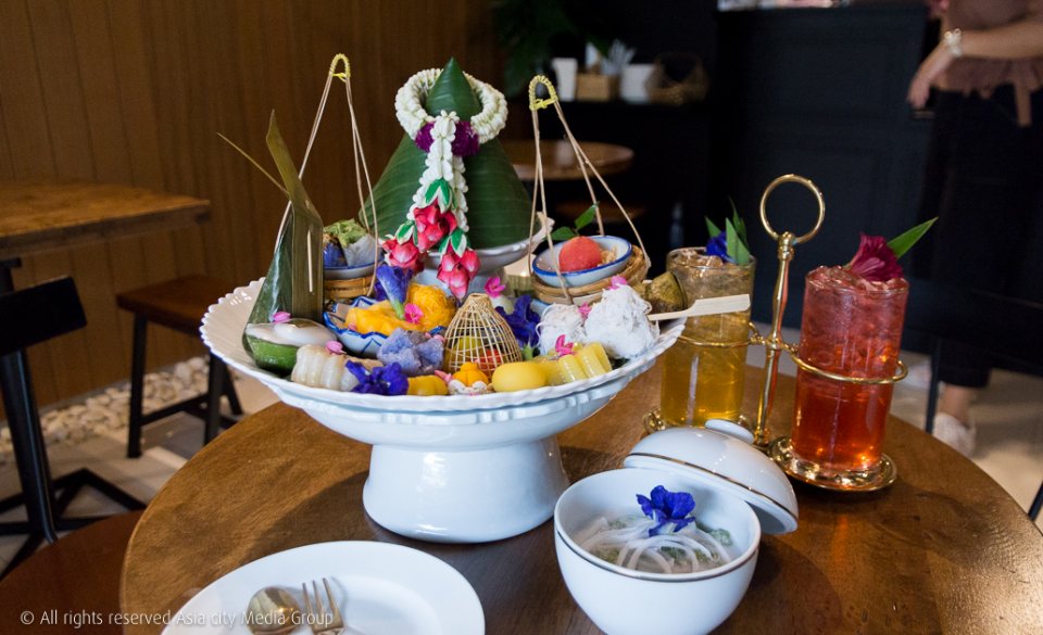 ขนมอย่างแรกที่ถ้าอยากลองกินให้ครบก็ต้องสั่งอย่างเซ็ตรวม นิมมานรดี (790 บาท) ที่ตั้งชื่อตามชั้นของสวรรค์ที่เหมือนเป็นการลำดับขั้นของความฟิน โดยมีอีก 2 เซ็ตคือ ดุสิตา (590 บาท) และยามา (490 บาท) โดยในเซ็ตก็จะมีขนมไทยสารพัดอย่าง มีข้าวเหนียวมะม่วง สาคูกะทิ และเครื่องดื่มเย็น 2 แก้วคือ น้ำพิงค์เก๊กฮวย และน้ำเก๊กฮวย (หรือจะเลือกเป็นชาร้อนก็ได้) ซึ่งใครที่กลัวว่าขนมไทยจะรสหวานโดด ๆ กินแล้วเลี่ยนง่ายก็ไม่ต้องกลัวนะ เพราะร้านนี้เขาปรับสูตรให้มีความหวานจาง ๆ ชิมได้หลายอย่างเพลิน ๆ เลยแต่แบ่งกับเพื่อนกินหน่อยก็ดีนะ