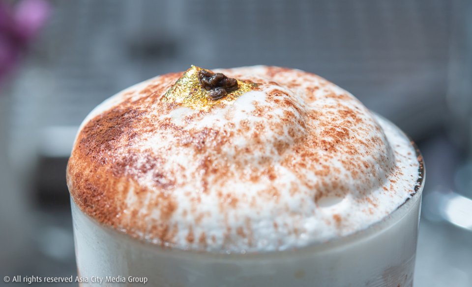 ส่วนตัวเด็ดสุดท้ายที่ได้ลองวันนี้คือเมนูใหม่ที่วางขายในสาขาแรกมาซักพักแล้วอย่าง Black Truffle Cocoa (160 บาท) ชั้นล่างเป็นพุดดิ้งทรัฟเฟิล ต่อด้วยไซรัปสูตรลับ (ที่ไม่ยอมบอกว่าคืออะไร) และปิดท้ายด้วยซอสช็อคโกแลตเข้มข้น ท็อปด้านบนด้วยโฟมนม ทองคำเปลว และอะไรซักอย่างที่เหมือนซอสเห็ดทรัฟเฟิล