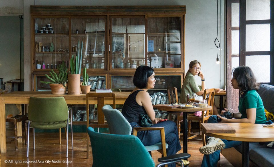 ตัวคาเฟ่มาพร้อมอินทีเรียดีไซน์สไตล์สแกนดิเนเวียตามความชอบของแก๊งเจ้าของร้าน เน้นการโชว์โครงสร้างตึกเก่าแบบห่าม ๆ (แต่ดูสะอาด) นำสายตาด้วยคานเหล็ก ใช้ไม้สีเข้มมาผลักดันความดิบของผนังสีปูนเปลือย ปิดท้ายด้วยเฟอร์นิเจอร์วินเทจแบบแรนด้อม