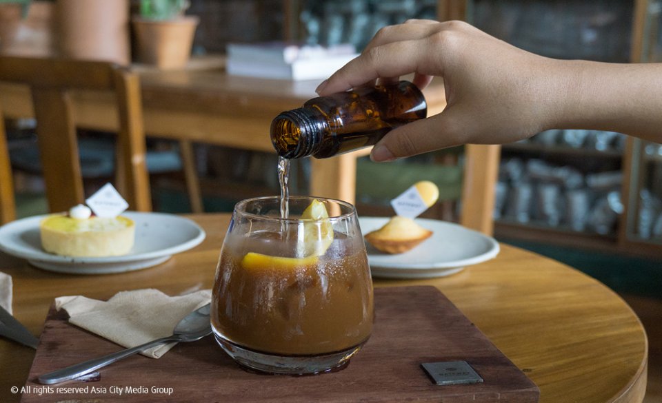 ส่วนใครที่เป็นสายหวานไม่ดื่มกาแฟ ที่นี่ก็มีเมนูอย่าง Orange Hill (140 บาท) ซึ่งนางไม่ใช่ช็อคโกแลตเย็นธรรมดาไก่กาอาราเล่ แต่นางมีการเพิ่ม Triple Sec และส้มชิ้นโตลงไปด้วย เป็นการเอารสเปรี้ยวแบบฟรุ๊ตตี้ของส้มมาตัดความหวานเลี่ยนของช็อคโกแลตได้ลงตัวดี ถ้าสั่งมากินคู่กับขนมอบสูตรโฮมเมดของร้านนี้อย่าง Lemon Cheese Cake (120 บาท) และ Butter Scotch Cake (85 บาท) จะฟินนาเล่แบบลืมนับแคลอรี่กันไปเล้ย !