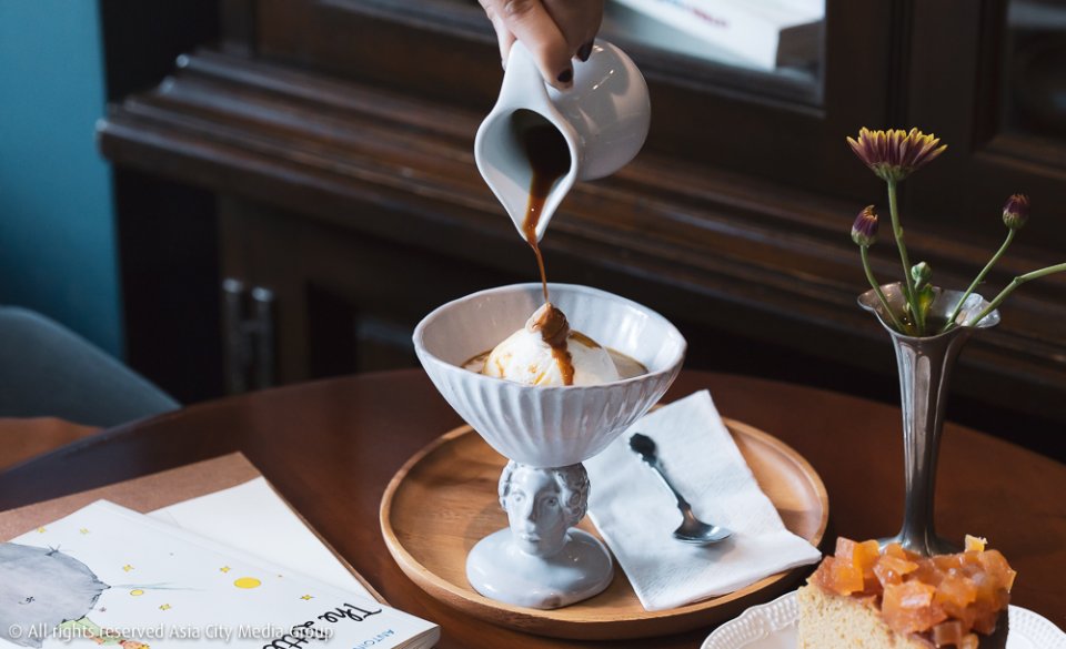 กาแฟเมล็ดเฮ้าส์เบลนด์ระหว่าง ไทย ลาว และบราซิล ถูกเลือกใช้ให้เป็นเอสเพรสโซ่ของที่นี่ โดยมีซิกเนเจอร์เป็น Coffee Float (120 บาท) ช็อตเอสเพรสโซ่ที่เสิร์ฟมาพร้อมกับความดีงามอีกอย่างของร้านนี้อย่างไอศกรีมโฮมเมด ทีเด็ดที่อยากให้ลองคือไอศกรีมขนมผิง ที่จะได้กลิ่นหอมจากควันเทียนที่ใช้อบขนมปะปนมากับเนื้อไอศกรีมแน่น ๆ ขั้นสุดแห่งความนัว
