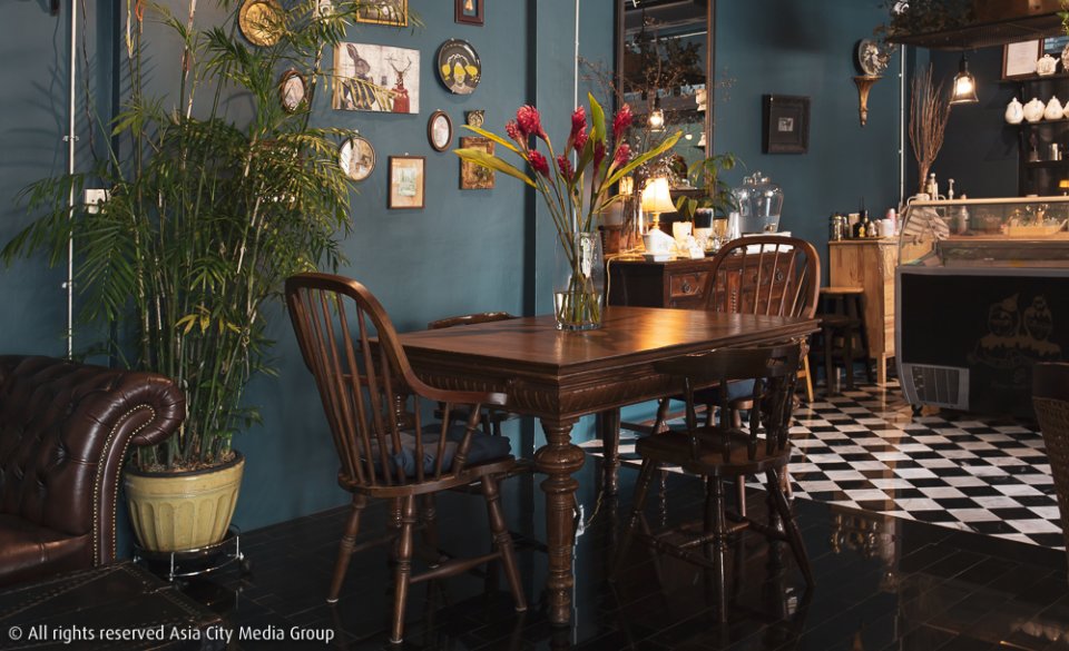 โรงพิมพ์เก่าแห่งนี้ถูกแปลงโฉมด้วยเฟอร์นิเจอร์วินเทจ ที่แทบทุกชิ้นมีที่มาที่ไป ไม่ใช่ของไก่กาอาราเล่หรือเอามารีเมกทำใหม่แต่อย่างใด เดินเข้าด้านหน้าร้านจะเจอกับบาร์กาแฟที่มี คุณโตโต้-ฐิติวัฒน์ ทัศนียานนท์ และ คุณเจ-วรวรรณ สุวัฒนพิมพ์ เจ้าของร้านใจดีทั้งสองยืนประจำตำแหน่งอยู่