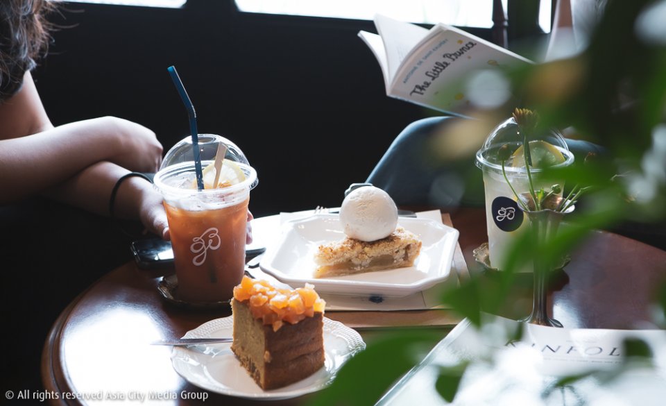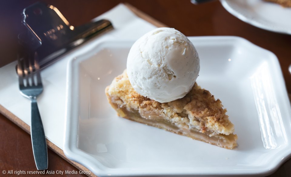 และก็ไม่ใช่แค่ไอศกรีมที่โฮมเมด เพราะเค้กของที่นี่ก็ยังคงคอนเซ็ปต์ทำเองทุกอย่างด้วยเช่นกัน อย่างที่เราสั่งมาลองเป็น Apple Crumble (120 บาท) ที่อบเองจากเตาหอมกรุ่นทุกวันโดยคุณเจ