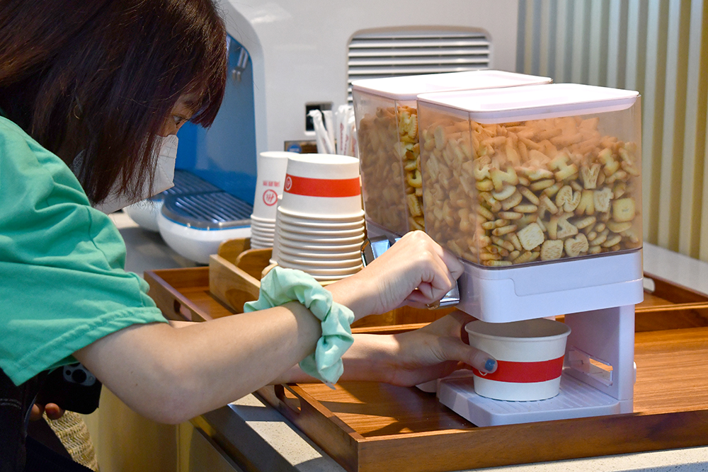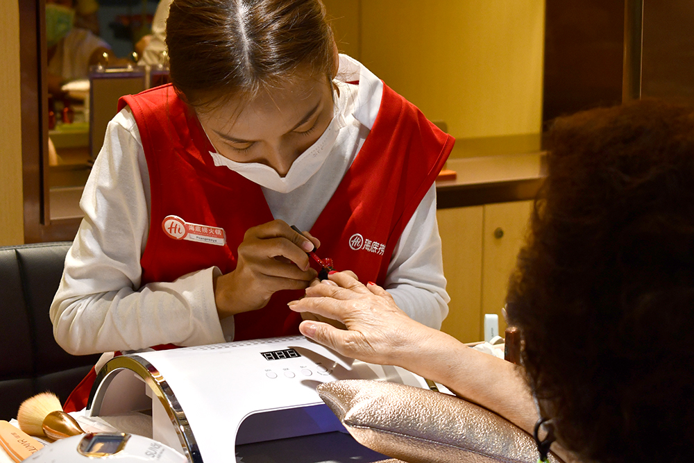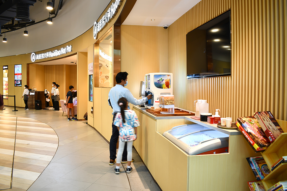 สำหรับใครที่เดินไปโซน Haidilao แล้วยังไม่ถึงคิวที่จองไว้ ที่นี่เขาก็มีบริการน้ำดื่ม น้ำอัดลม และขนมขบเคี้ยวอย่างพวกบิสกิต ไปจนถึงไอศกรีมถ้วยหลากรสไว้บริการฟรีสำหรับคนที่มานั่งรอด้านหน้าโซนนี้ ความน่ารักคือนอกจากขนมต่าง ๆ ที่แทบจะกินจนอิ่มก่อนเข้าไปด้านในแล้ว โซนด้านนอกนี้ยังตอบโจทย์สาว ๆ ด้วยบริการทำเล็บฟรี พ่วงด้วยตู้ถ่ายสติกเกอร์ที่ทุกคนสามารถจองคิวใช้บริการได้เลยเต็มที่!