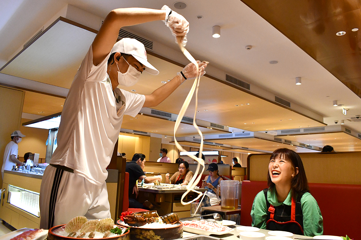ไฮไลต์ที่พลาดไม่ได้อีกอย่างเมื่อมานั่งทาน Haidilao คือการสั่งเมนู เส้นนุ่มกังฟู (55 บาท) มาทานพร้อมน้ำซุปชาบู โดยความพีกอยู่ตรงที่การแสดงม้วนเส้นแบบสด ๆ ที่หน้าโต๊ะ ซึ่งถือเป็นซีนที่ถ้าใครไม่ยกมือถือขึ้นมาถ่ายสตอรี่ จะถือว่าใจแข็งมาก ๆ!