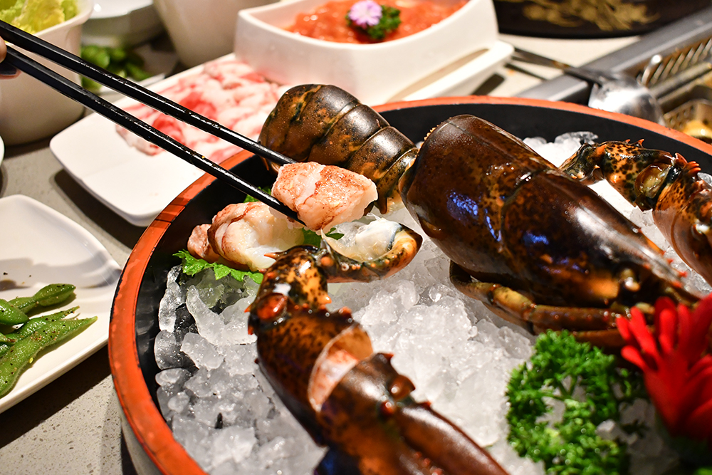อย่างพาร์ตเนื้อสัตว์วันนี้ที่เราสั่งมา ก็จัดเต็มเหมือนยกทั้งทะเลมาไว้ในหม้อชาบู เริ่มจาก ล็อบสเตอร์ (1,299 บาท) หอยเป๋าฮื้อ (118 บาท) ปลากะพงแดง (180 บาท) หอยเชลล์ (140 บาท) ไปจนถึงเนื้อเกรดพรีเมียม อาทิ วากิวออสเตรเลีย (700 บาท) เนื้อแกะสไลด์ (120 บาท) สันคอหมูคุโรบูตะ (125 บาท) และเนื้อโกเบส่วนหน้าอก (490 บาท) ซึ่งหาทานได้ยากมาก ๆ ที่ร้านชาบูที่อื่น แถมทุกครั้งพนักงานจะถามก่อนว่าอยากให้ต้มเนื้อลงในหม้อน้ำซุปไหน โดยน้ำซุปที่แนะนำก็มีให้เลือกตั้งแต่ น้ำซุปหม่าล่า น้ำซุปน้ำมันวัว น้ำซุปสามสหาย และน้ำซุปต้มยำ เรียกได้ว่าครอบคลุมทุกรสชาติที่สายชาบูปลื้มเลยทีเดียว