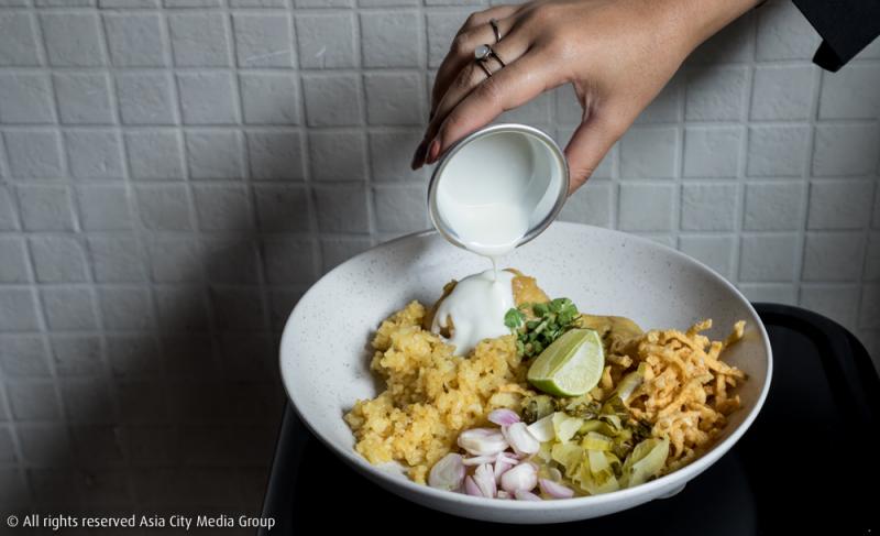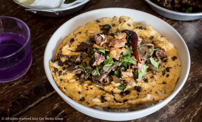 มีโอปป้าแล้ว นูน่าจะไม่มาได้ยังไง?! จุด ๆ นี้เลยขอต่อด้วย ข้าวซอยนูน่า (131 บาท) วิธีการกินก็คล้าย ๆ กับเวลากินสึเคเมน (ราเมนจิ้มจุ่ม) อารมณ์เอาเส้นไปจุ่ม ๆ กับน้ำซุป ได้ความเข้มข้นแปลกใหม่ไปอีกแบบ ส่วน ข้าวไข่ข้นลาบคั่ว (121 บาท) ก็ทำขึ้นมาสำหรับคนชอบกินไข่โดยเฉพาะ แถมเพิ่มความแซ่บอีกเล็กน้อยด้วยลาบหมูคั่วพอให้ซี๊ดซ๊าดกันเบา ๆ