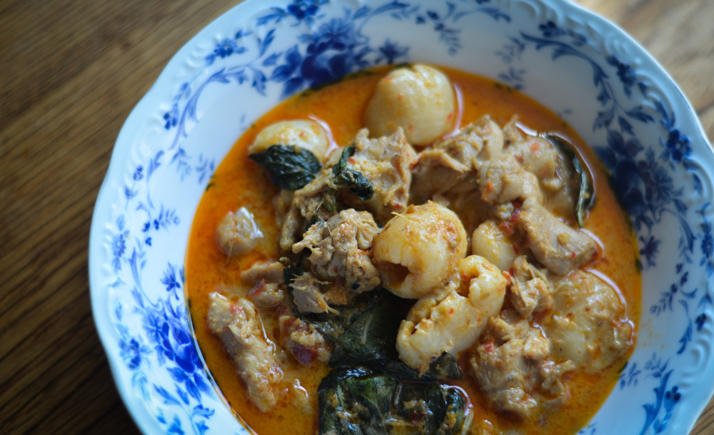 มีข้าวแล้วก็ขอกับข้าวหน่อย เมนูต่อมาจึงเป็น แกงเผ็ดลิ้นจี่ไก่ (ราคาปกติ 220 บาท ราคาลดแล้ว 154 บาท) ที่ชื่อไม่ค่อยคุ้นหูเลยต้องขอจัดมาลองสักหน่อย ความประทับใจแรกก็คือทางร้านเลือกลิ้นจี่ลูกโตจัดมาให้แบบไม่หวง ความหวานของลิ้นจี่ตัดกับรสชาติเผ็ดร้อนของเครื่องแกงได้ดี จนทำให้ตักกินคู่กับข้าวได้เพลิน ๆ เลย