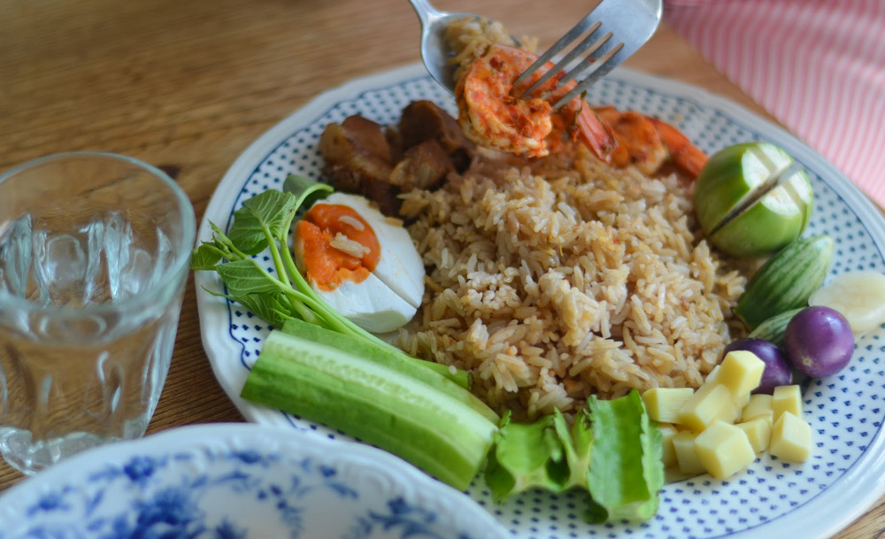 ขยับมาที่เมนูอาหารไทยกันบ้าง จานหลักของเมนูอาหารไทยที่เราเลือกมาก็คือ ข้าวโจรี (ราคาปกติ 190 บาท ราคาลดแล้ว 160 บาท) ที่เบสจริง ๆ แล้วก็คือข้าวคลุกกะปิกับหมูหวาน แต่ความพิเศษของเมนูนี้คือ เป็นขาวขยำน้ำพริกกะปิหอม ๆ ที่นอกจากจะเสิร์ฟมากับหมูหวานแล้ว เขายังจัดพล่ากุ้งเนื้อแน่นมาให้กินคู่กันด้วย นับเป็นจานที่คุ้มมาก ๆ สำหรับใครที่คิดอยากสั่งอาหารจานเดียวนะ เพราะได้ครบทั้งข้าว เนื้อสัตว์ และผัก และเจ้าข้าวขยำกะปินี่ทานกับพล่ากุ้งรสแซ่บแล้วเข้ากันดีแบบไม่น่าเชื่อ