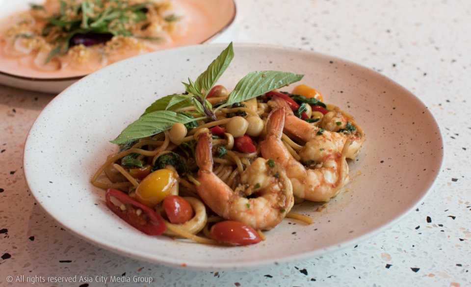 นอกจากนั้นก็ยังมีเมนูไทยทวิสต์เก๋ ๆ อาทิ ต้มโคล้งปลากระพงทอดกรอบ (340 บาท) ที่เชฟของที่ร้านนำปลากระพงไปทอดจนกรอบก่อนเสิร์ฟพร้อมซุปต้มโคล้งน้ำใสรสจัดจ้าน และ หมูย่างคุโรบุตะหม่าล่า (370 บาท) ซึ่งใครที่เป็นสายเนื้อจะต้องเลิฟแน่ ๆ