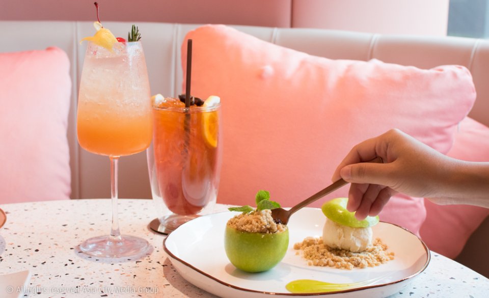 แต่ความไม่ไก่กาของร้านนี้เริ่มต้นตั้งแต่เมนูเบา ๆ จำพวกของหวาน ที่ทางคุณทรงกรต ตันติศรีสุข ได้เล่าให้ฟังว่าทางร้านได้เชฟสาวชื่อดังอันดับต้น ๆ ของประเทศมาครีเอทเมนูให้ อาทิ Apple of Eden Ice Cream (250 บาท) ที่ใช้แอปเปิ้ลเขียวทั้งลูกมาอบพร้อมครัมเบิ้ลกรุบกรอบ เสิร์ฟพร้อมไอศกรีมวานิลลา