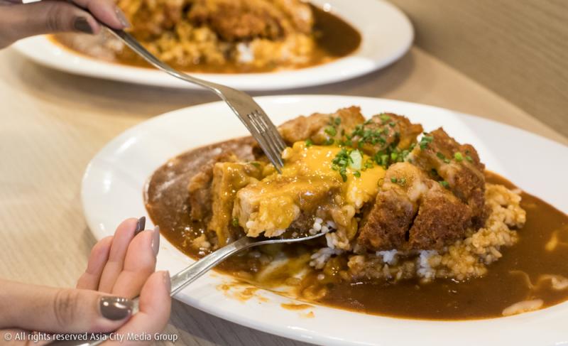จุด ๆ นี้ถ้ารู้สึกอิ่มก็เงยขึ้นมามองหน้าเชฟสักหน่อยก่อนก็ได้ แล้วค่อยลุยเซ็ตต่อไปสั่งมา อย่าง ข้าวกะหรี่มีปีก (179 บาท) สะโพกไก่คลุกเกล็ดขนมปังมาแบบหนากำลังดี และข้าวกะหรี่อ๊วนอ้วน (189 บาท) หมูสันนอกเนื้อติดมันนิด ๆ จากโลคัลฟาร์มไทย ราดด้วยซอสแกงกะหรี่สูตรลับ และใครที่อยากแอดวานซ์ก็สามารถสั่งเพิ่มท็อปปิ้งที่มาพร้อมชื่อเมนูเก๋ ๆ อย่าง เจาะไข่แดง (19 บาท) ไข่แดงสดนำเข้าจากญี่ปุ่น และมอสซา (29 บาท) มอสซาเรลล่าชีสยืด ๆ แน่น ๆ ซึ่งเราแนะนำมาก ๆ ให้ทุกคนสั่ง เพราะมันจะเพิ่มความนัวให้แกงกะหรี่ของเราอร่อยฟินขึ้นอีกหลายเลเวล