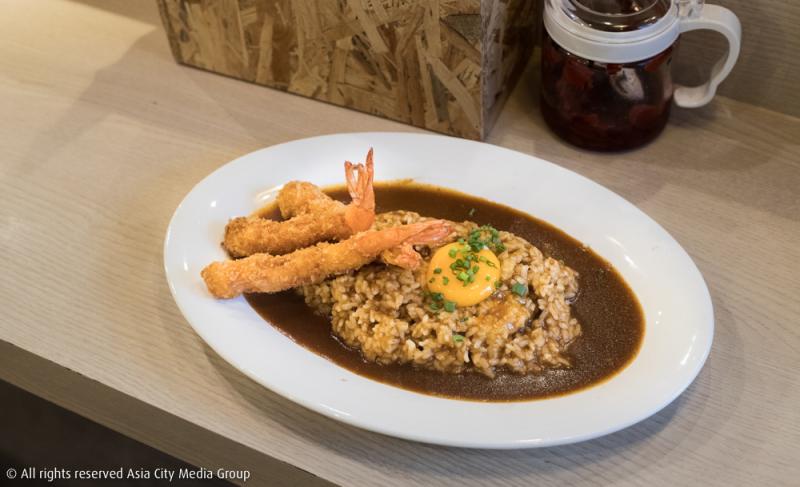 นอกจากจะอิ่มใจจากหน้าตาเชฟที่ถ้าใครอยากเห็นชัด ๆ ถึงรูขุมขนก็เลือกนั่งที่หน้าเคาน์เตอร์บาร์ได้เลย เรายังอิ่มจนพุงกางสุด ๆ หลังจากสั่งเมนูแกงกะหรี่เด็ด ๆ ของร้านนี้มาลองด้วยกัน 3 เมนู เริ่มจาก ข้าวกะหรี่น้องจุ้ง (199 บาท) กุ้งแชบ๊วยตัวใหญ่ที่เชฟปอนด์นำไปหมักด้วยเกลือและพริกไทย คลุกเคล้าเกล็ดขนมปังแล้วทอดกรอบ ๆ ในน้ำมันอุณหภูมิสูง เสิร์ฟบนข้าวญี่ปุ่นหุงร้อน ๆ และราดด้วยน้ำซอสแกงกะหรี่ที่เชฟบอกว่ามีเคล็ดลับอยู่ที่การใส่เนื้อวัวลงไปตุ๋นคู่ไปกับก้อนแกงกะหรี่นำเข้าจากญี่ปุ่น ใส่ผลไม้หลายชนิดลงไป รวมถึงเพิ่มรสและกลิ่นหอมที่เป็นเอกลักษณ์ด้วยปาปริก้าและพริกคาเยน จากนั้นจึงเคี่ยวต่ออีก 3 รอบ รวม ๆ แล้วก็ใช้เวลาปาเข้าไป 2 คืนเต็ม ๆ กว่าจะกลายมาเป็นซอสแกงกะหรี่สูตรลับฉบับ I Am Curry ที่รสชาติไม่เผ็ดโดด ไม่หวานเลี่ยน และไม่ฉุนกลิ่นเครื่องเทศจนเกินไป