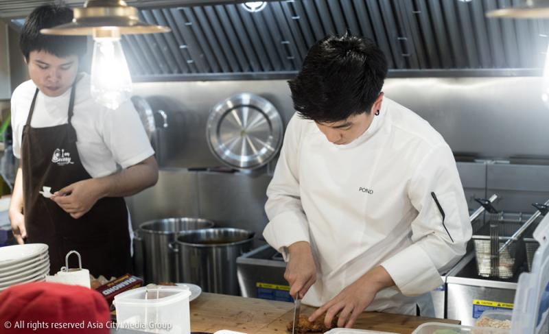 คำตอบน่าจะมาถึงตั้งแต่วินาทีแรกที่เราเปิดประตูเข้าไปในร้าน แล้วเจอกับ เชฟปอนด์-สหดล ตันตราพิมพ์ ที่ยืนทอดหมูอยู่หลังเคาน์เตอร์ครัวแบบโอเพ่นคิทเช่น จุด ๆ นี้เรียกได้ว่าหน้าเชฟยังคงใสกิ๊ก ออร่าแน่นแบบไม่เกรงใจเตาน้ำมันกับกระทะเหล็กข้างหลังกันเลยทีเดียว ซึ่งถ้าใครเคยดูรายการ Master Chef Thailand Season 3 จะเห็นว่าเชฟปอนด์ (ผู้ไม่ได้เรียนจบเชฟ) เป็นหนึ่งในผู้เข้าแข่งขันที่มีแพชชั่นเรื่องอาหารสูงมาก จนพอจบรายการ ก็เลยขอตัวออกมาทำตามความฝันและมาลงล็อกที่เมนู 'ข้าวแกงกะหรี่' นั่นเอง