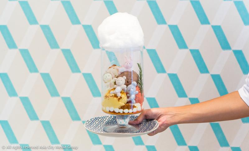 เริ่มกันที่เมนูไฮไลท์ที่เรียกว่าโต๊ะไหนมาก็ต้องสั่งอย่าง Welcome To The Zoo (890 บาท) พาร์เฟต์แก้วใหญ่ไซซ์จัมโบ้ยกกองทัพเมอแรงก์น้องหมี กระต่าย ช้าง และสิงโตมากันทั้งสวนสัตว์ พร้อมด้วยไอศกรีมและซอร์เบต์ก้อนยักษ์อีก 5 ก้อน ทั้งรสวนิลา ช็อคโกแลต สตรอเบอร์รี่ พราลีน และเอ็กโซติก ซึ่งเป็นรสพิเศษทำมาจากผลไม้เมืองร้อนสีเหลืองทั้งหลายแหล่ อาทิ มะม่วง เสาวรส กล้วย และสับปะรด ยังไม่หมดแค่นั้นนะ เพราะเจ้าพาร์เฟต์แก้วนี้ยังมีบัตเตอร์เค้กสูตรพิเศษของเชฟรองอยู่ด้านล่างให้ตักขึ้นมากินคู่กับไอศกรีม พร้อมโปะด้วยสายไหมก้อนกลมที่ด้านบนไปอีก ใครมาแล้วไม่สั่งเมนูนี้ถือว่าพลาดอย่างแรง!