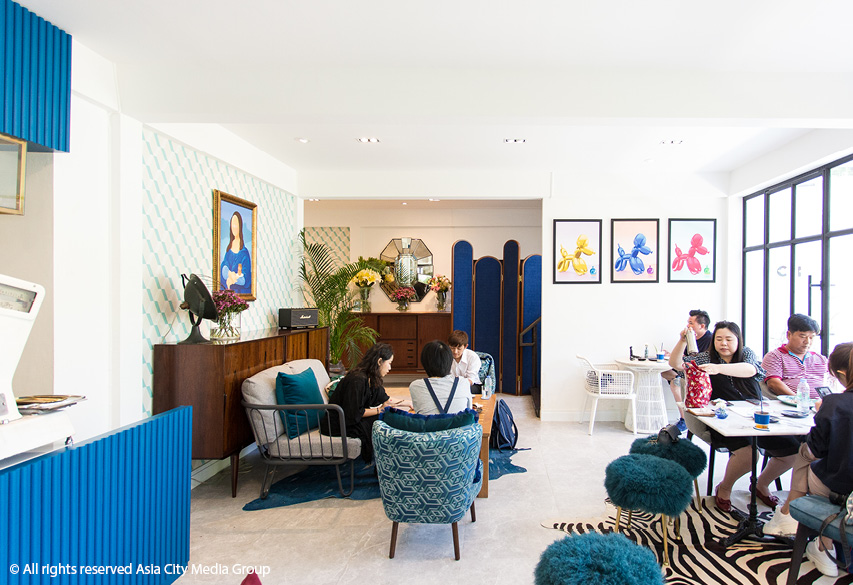 และนี่ก็คือคาเฟ่ขนมหวานเปิดใหม่ที่จัดจ้านที่สุดในย่านอโศก เริ่มตั้งแต่การสาดสีฟ้า-น้ำเงินลงไปตัวบ้านเก่าสองชั้นที่ซ่อนอยู่ในซ.สุขุมวิท 27 ทั้งโซฟา จานชาม เคาน์เตอร์ ไปจนถึงลูกโป่งยักษ์หน้าร้าน เรียกว่าใครชอบสีฟ้าน่าจะหลงรักร้านนี้สุด ๆ ไปเลย!