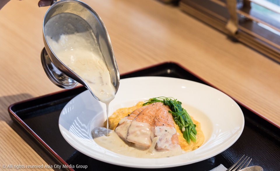 ร้านมังเท็น-โบชิ โตเกียว เปิดให้บริการมาตั้งแต่ปี 2521 โดยเสิร์ฟอาหารตะวันตกสไตล์ญี่ปุ่นแบบละเมียดละไม มาคราวนี้ทางร้านก็ร่วมฉลองครบรอบ 26 ปีอิเซตันด้วยการออกเมนูพิเศษ ข้าวห่อไข่สไตล์ญี่ปุ่นกับแซลมอน เสิร์ฟพร้อมครีมซอส (280 บาท) แค่สีสันของอาหารก็สดใสเหมือนอยู่ในฤดูใบไม้ผลิแล้ว ข้าวผัดกับซอสมะเขือเทศห่อด้วยไข่แบบสุกกำลังดี ยังมีเยิ้ม ๆ ให้ได้กินคู่กับข้าวอย่างอร่อยอยู่ แซลมอนเองก็ไม่สุกจนแข็ง ส่วนครีมซอสก็เข้มข้านมากแต่ไม่เลี่ยนเลย กินหมดแล้วแทบอยากเดินไปตะโกนหน้าร้านว่า ช่วยเอาลงเป็นเมนูประจำทีเถอะ มันโออิชิมากกกกก