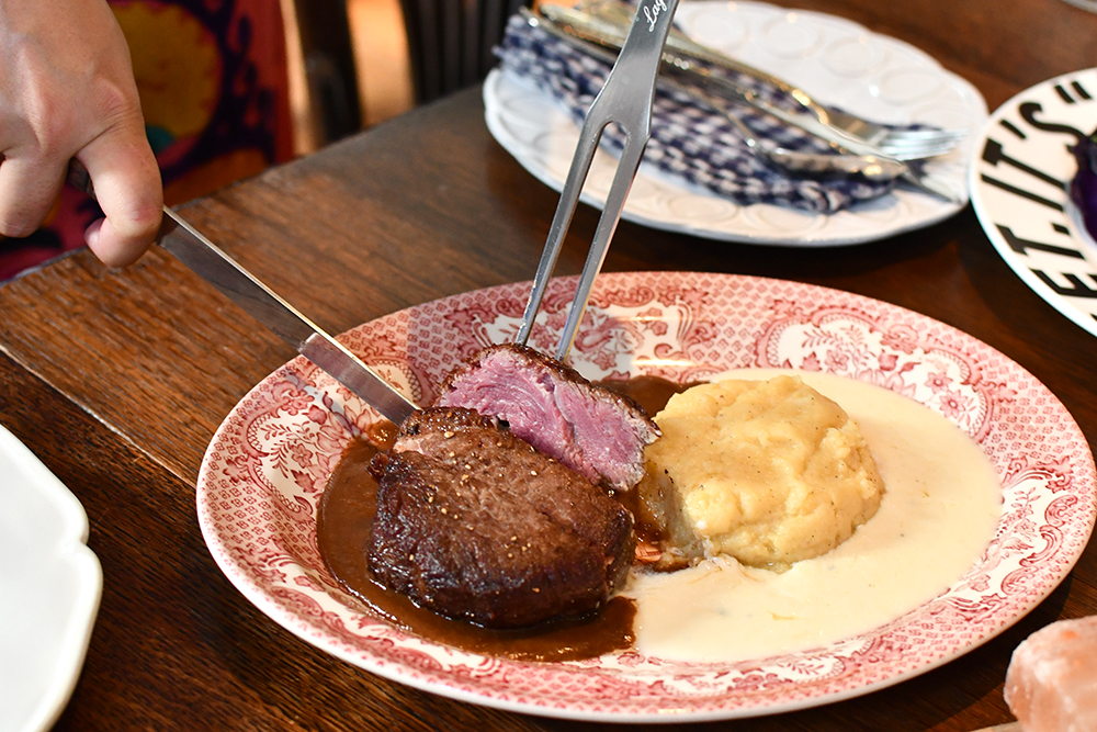 แน่นอนว่าถ้าจะพูดถึงโซน MEAT ซึ่งเป็นไฮไลต์ใหม่ของอาณาจักร It's "Happened To Be" A Closet ฉบับปี 2022 มาขนาดนี้ แล้วไม่ยอมสั่งเมนูในหมวดหมู่เนื้อมาลองชิม คงเรียกได้ว่าเป็นตราบาปไปตลอดชีวิตแน่ ๆ รอบนี้เราเลยขอสั่ง Square for Sear (890 บาท) เซตเริ่มต้นสำหรับคนรักการกินเนื้อแต่กระเพาะอาหารมีพื้นที่จำกัดมาชิม โดยเราสามารถเลือกเนื้อจากฟาร์มต่าง ๆ ที่ทางร้านคัดสรรมา ให้เชฟแล่เป็นไซซ์ขนาดสี่เหลี่ยมจตุรัสเล็กพอดีคำ ย่างด้วยไฟแรงและทานคู่กับเกลือตามสไตล์ดั้งเดิม หรือใครที่อยากลองทานเนื้อแบบฝรั่งเศส ก็สามารถสั่ง Filet Mignon (1550 บาท) เมนูพื้นบ้านที่ชาวปารีสรัก โดยเราเลือกสั่งเป็นเนื้อวัวออสเตรเลียส่วนสันในจากฟาร์มชื่อ Ebony มาให้เชฟจัดการย่างและราดซอสเกรวี่คลาสสิก พร้อมเสิร์ฟมาคู่กับมันบดและซอสเกรวี่ชีส 3 ชนิด รสชาติข้นคลั่กในแบบที่เด็กอ้วนต้องหลั่งน้ำตา!