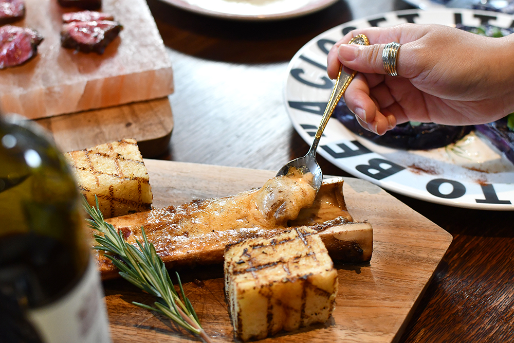 ปิดท้ายหมวดหมู่เนื้อด้วย Bone Marrow (550 บาท) ไขกระดูกวัวที่ละลายไปกับเนยและกระเทียม คุณค่าที่คุณคู่ควรจากการเลือกใช้กระดูกวัวของฟาร์ม SHER ที่ได้รางวัลเรื่องสายพันธุ์วัววากิว เสิร์ฟพร้อมขนมปังบริยอชโฮมเมดอบจากเตาร้อน ๆ ทุกวัน ซึ่งทางร้านแนะนำให้จับคู่กินแบบฟินนาเล่กับไวน์แดงตัวพิเศษอย่าง Le Sughere (1,950 บาท) ไวน์ลูกผสมที่เกิดจากการคอลแลบฯ กันระหว่างไร่ไวน์ที่ฝรั่งเศสกับอิตาลี (ที่ปกติมักจะตีกันมาตลอดปีตลอดชาติ) ทำให้ไวน์ขวดนี้ให้รสซับซ้อนจากสายพันธุ์องุ่นที่ต่างกันนั่นเอง