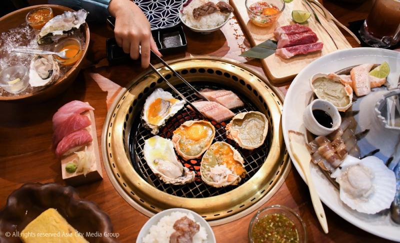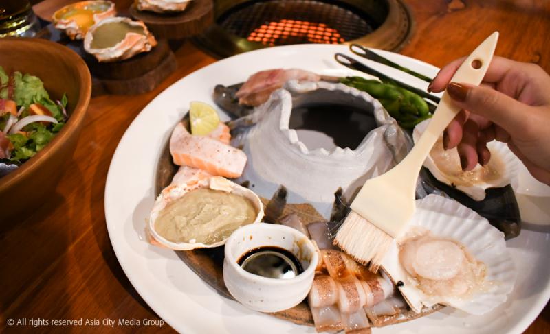 ส่วน Kaisen Omori Set (850 บาท) เซ็ตนี้ ก็ทำออกมาขายเอาใจคนรักซีฟู้ดที่แท้ทรู กับการยกสรรพสัตว์ทะเลทั้งหลายมาไว้บนเตาให้เราได้ปิ้ง ๆ ย่าง ๆ กันรัว ๆ ทั้งปลาแซลมอน ปลาหมึก หอยเชลล์ รวมถึงคานิมิโซะออริจินัล เชื่อว่าถ้ามากินกับแก๊งเพื่อนก็คือปิ้งเพลินกันจนดึกจนดื่นแน่นอน