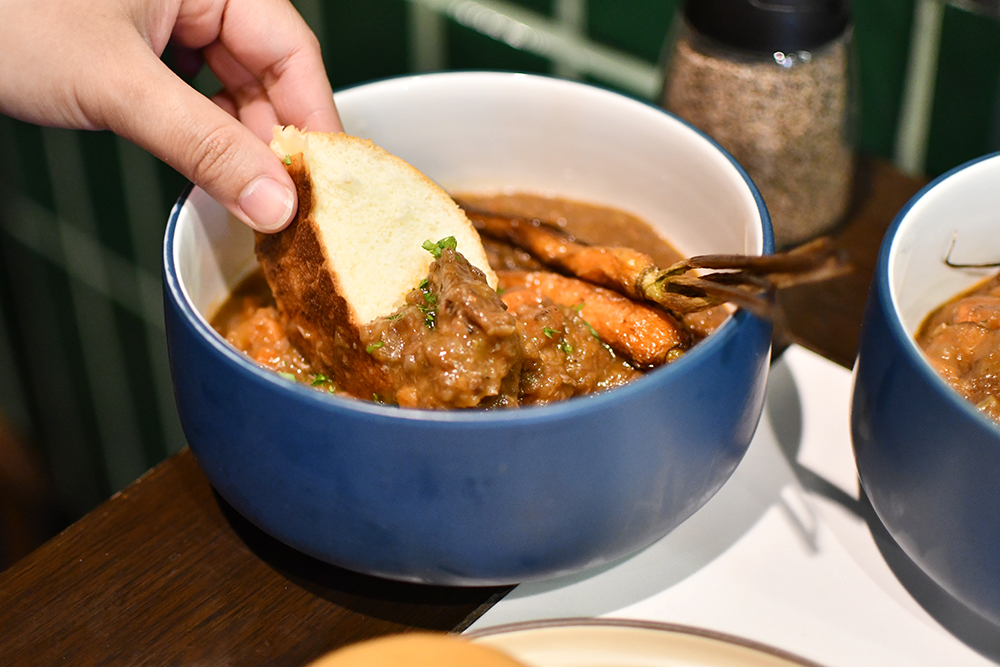 ความสนุกอีกอย่างของร้านใหม่นี้คือการปล่อยของให้เหล่าแฟนคลับได้ชิมมากกว่าเบอร์เกอร์แสนอร่อย (เบอร์เกอร์ก็ยังมีเสิร์ฟอยู่นะ) แต่ยังเพิ่มเมนูพิเศษประจำซีซันออกมาด้วย อาทิ Beef Stew (480 บาท) สตูเนื้อส่วนใบพายที่ตุ๋นอย่างใจเย็นจนเอ็นในชิ้นเนื้อเปื่อยนุ่มเคี้ยวง่าย ให้ฟีลเหมือนกินสตูสไตล์ญี่ปุ่นเบา ๆ และเสิร์ฟพร้อมขนมปังเทอร์กิชเบรดโฮมเมด