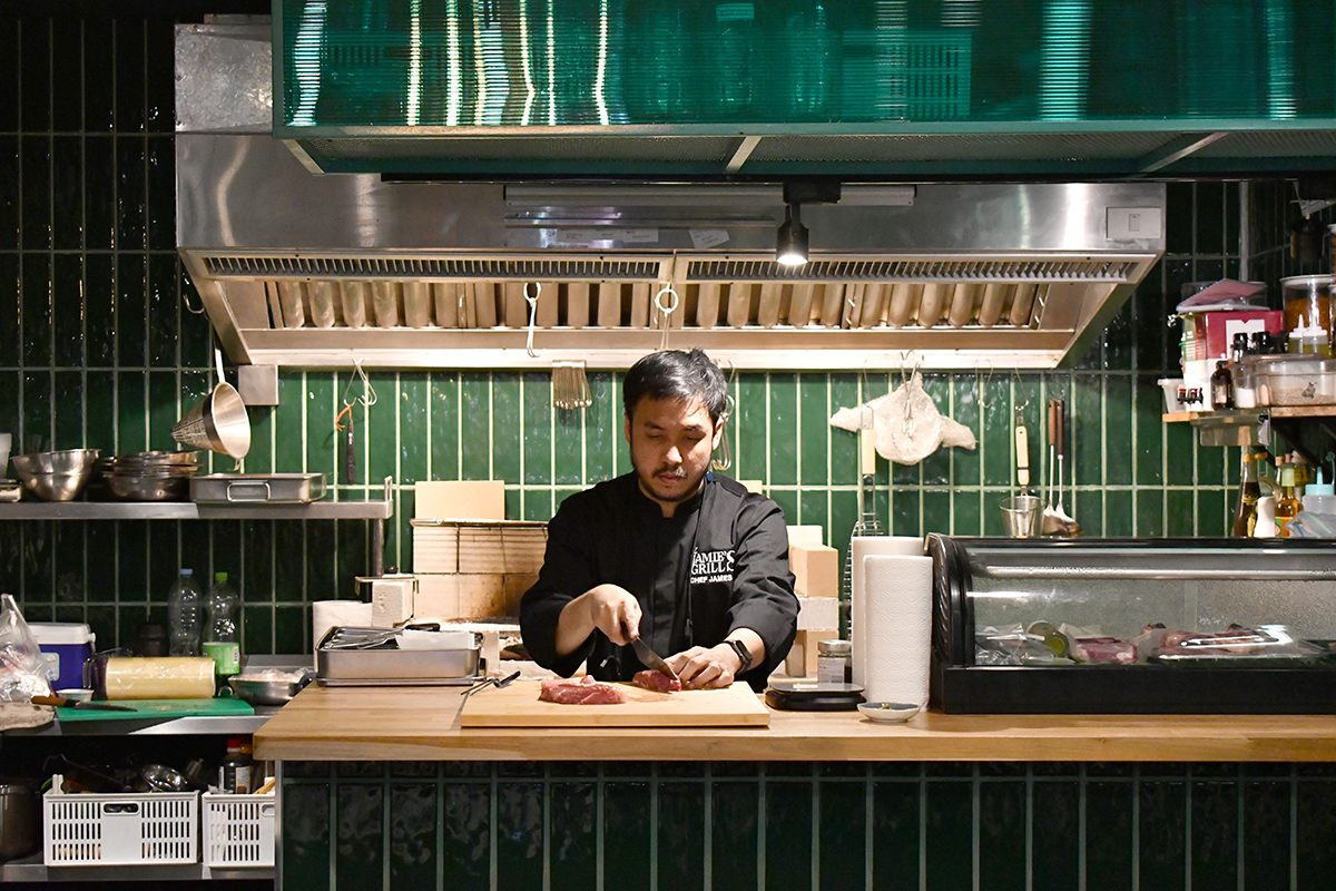 ถ้านับนิ้วถึงเชฟชื่อดังที่เป็นขวัญใจสายเนื้อเมืองไทย เราเชื่อว่าชื่อของเชฟเจมส์-พงษกร บุญรักษา หนึ่งในผู้เข้าแข่งขันรายการ Top Chef Thailand Season 3 และเจ้าของร้านเบอร์เกอร์ชื่อดังที่เคยมีสาขาอยู่ทั่วกรุงเทพฯ (และหนึ่งสาขาในโคราช) อย่างร้าน Jamie's Burger คงถือเป็นหนึ่งในนิ้วที่ต้องนับเข้าไปด้วยอย่างแน่นอน ซึ่งหลังจาก Jamie's Burger สาขาหลักในย่านอารีย์ได้ปิดตัวลงไปได้ไม่กี่เดือน เชฟเจมส์ก็มาพร้อมโปรเจกต์ใหม่ที่ยังคงคาแรกเตอร์ความเป็นเซียนด้านเบอร์เกอร์เหมือนเดิม เพิ่มเติมคือโฟกัสพาร์ตงานเนื้อมากกว่าเดิม และไฮไลต์ไปที่เทคนิคการย่างเนื้อด้วยถ่านในสไตล์ตัวเองมากขึ้น จนเกิดเป็น Jamie's Grill ร้านที่จับทุกอย่างมากริลล์และเสิร์ฟเน้น ๆ แน่น ๆ ล้นจาน
