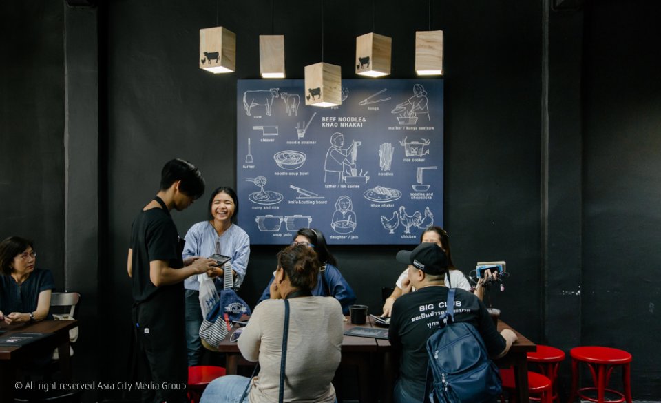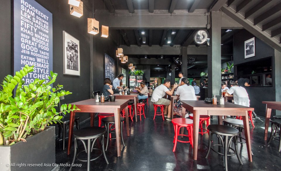 จุดเด่นที่เห็นได้ชัดของร้าน Jeib Roddeedet คือความคุมโทนในสีหลัก ดำ-แดง-ขาว ซึ่งได้คุณขาบ-สุทธิพงศ์ สุริยะ ฟู๊ดสไตล์ลิสมาร่วมออกแบบให้ตอบโจทย์ลูกค้ารุ่นใหม่สายเซลฟี่มากขึ้น