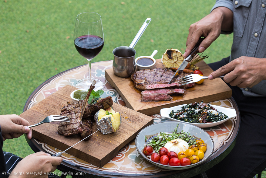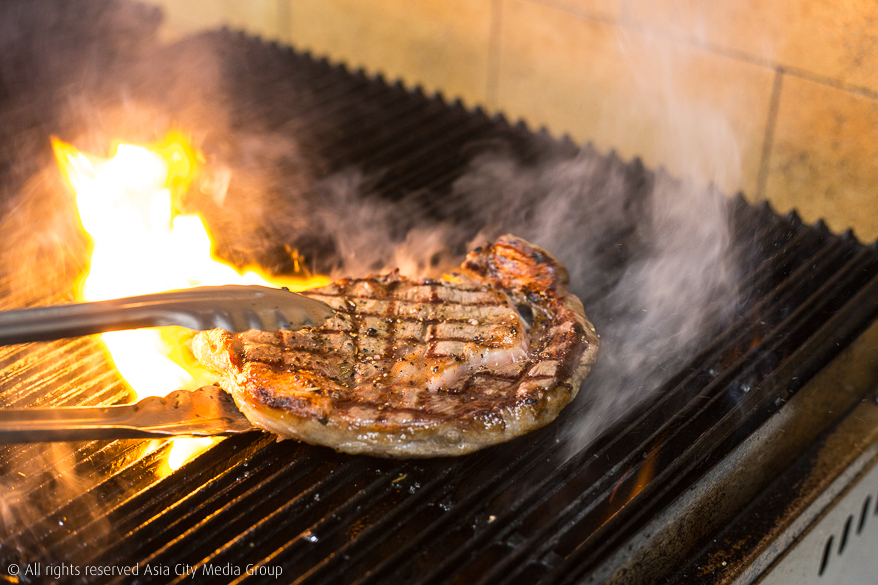 พอเลือกเนื้อสัตว์ที่ชอบได้แล้ว เชฟก็จะเอาไปปรุงเป็นสเต็กด้วยกระทะย่างหินลาวาภูเขาไฟ ข้อดีของกระทะแบบนี้คือมีกลิ่นสโม๊กเบา ๆ จากควันที่ได้จากน้ำและน้ำมันที่หยดลงบนหินลาวา หลักการปรุงง่าย ๆ ของร้านนี้คือการไม่ปรุงรสเยอะ ให้คุณภาพของเนื้อที่ดีทำหน้าที่ของมัน แล้วเสิร์ฟพร้อมซอสที่เลือกได้ทั้งแจ่วหอมแดง มิ้นท์ซอส เท็กซ์-เม็กซ์ บาร์บีคิว ซอสพริกไทยดำ ทาทาร์ซอส และเกรวี่