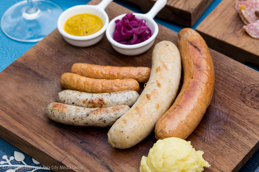 เราชอบชุดไส้กรอกรวม ที่มีทั้งไส้กรอกหมูสด ไส้กรอกหมูรมควัน ไส้กรอกเนื้อลูกวัว และไส้กรอกชีส (450 บาท) ทานคู่กับ Honey Mustard หรือ Sauerkraut Mustard สูตรพิเศษของที่ร้านก็ฟิน !
