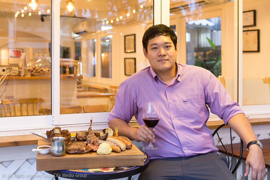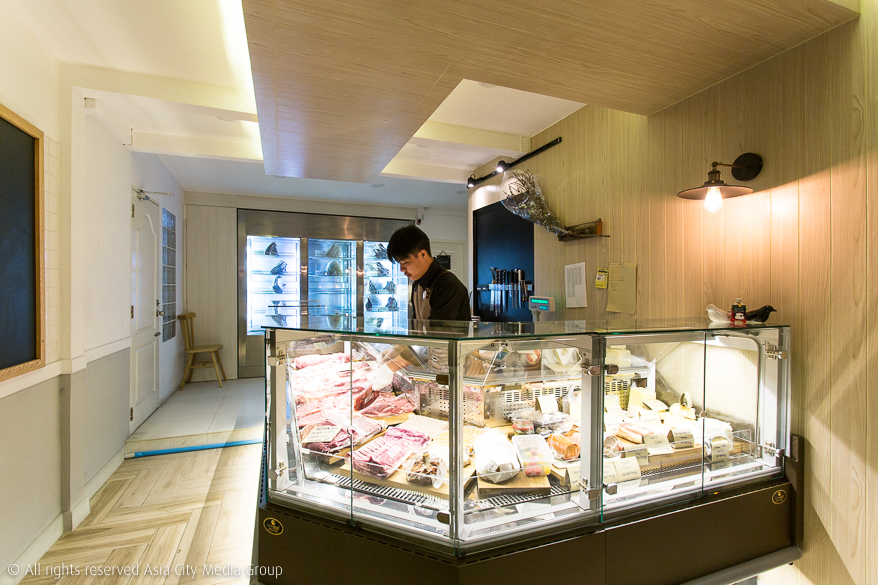 บ้านสไตล์อิงลิชคอจเทจ 2 ชั้นถูกแปลงร่างให้กลายเป็นสเต็กเฮาส์ที่แบ่งพื้นที่เกือบครึ่งหนึ่งของชั้นแรกให้เป็นโซนสำหรับสายเนื้อ ทั้ง US. Black Angus, Wagyu และ Thai French รวมไปถึงเนื้อ Dry-aged ที่ทางร้านทำเอง จุด ๆ นี้ก็เลือกจิ้มได้เลยตามน้ำหนักของเนื้อและความพอใจ โดยราคาเริ่มต้นตั้งแต่ 140-600 บาท