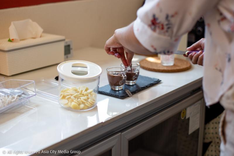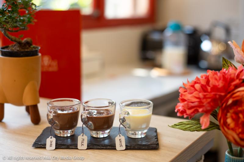 ประเภทที่ 2 คือกลุ่ม Selected Chocolate ที่ทางร้านหยิบช็อกโกแลตเบลเยี่ยมและฝรั่งเศสมาทำเป็นเครื่องดื่มหลากหลายเมนูให้ได้ลองชิมกัน ประเภทที่ 3 คือ Ordinary Cocao เหมาะกับคนที่เพิ่งเริ่มดื่มโกโก้ หรือใครที่ยังไม่ฮาร์ดคอร์มากนัก อยากดื่มอะไรที่คุ้นเคยไปก่อน เมนูกลุ่มนี้คือเริ่มจากการเลือกผงโกโก้ระหว่าง Original Dutch Process ที่ให้รสนุ่มเนียน, Plein Arome ที่หอมกว่าตัวแรก แต่ก็ดาร์กกว่าเช่นกัน และ Intense Deep Black โกโก้สีเข้มที่ประกอบไปด้วยโกโก้แมส 100% และโกโก้บัตเตอร์อีก 10-12% จากนั้นก็นำไปทำเป็นเครื่องดื่มร้อนหรือเย็นตามต้องการได้เลย ประเภทสุดท้ายกับ Mystery Taste เมนูเครื่องดื่มช็อกโกแลตที่นำไปมิกซ์กับเครื่องดื่มอื่น ๆ เพิ่มมิติและความสนุกของการดื่มช็อโกแลตมากขึ้น เช่นนำไปผสมกับ Green Mint, Coconut, Orange ไปจนถึง Red Pepper ก็มี