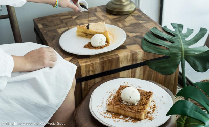 โดยขนมปังขาว (White Bread) ซึ่งถูกสั่งตรงมาจากซัพพลายเออร์ที่ทั้งสามคนชอบ จะถูกนำมาครีเอทเป็นเมนูต่าง ๆ ให้เลือกมากมาย อาทิ โทสต์หน้ากุ้งที่คลุกซอสศรีราชาและมายองเนส เหมาะสำหรับใครที่กำลังหาบรันช์ง่าย ๆ ทาน รวมถึงหน้าซอสไข่เค็มและครีมที่ทำหน้าตาออกมาน่ารักน่าหยิกจนไม่กล้ากิน ไปจนถึงเมนูโทสต์สายหวานอย่าง Kinako Egg Toast with Ice Cream (185 บาท) ที่ทางร้านนำขนมปังไปชุบไข่ก่อนจะโรยหน้าด้วยผงคินาโกะ เสิร์ฟพร้อมคุ้กกี้ครัมเบิ้ลรสคาราเมลจากเบลเยียม ไอศกรีมที่มีให้เลือกทั้งวานิลลาและชาเขียว และปิดท้ายด้วยซอสไซรัปคุโรมิสึ (น้ำตาลทรายแดง) ที่ใครชอบหวานเราก็แนะนำให้ราดหมดถ้วยไปเลย!
